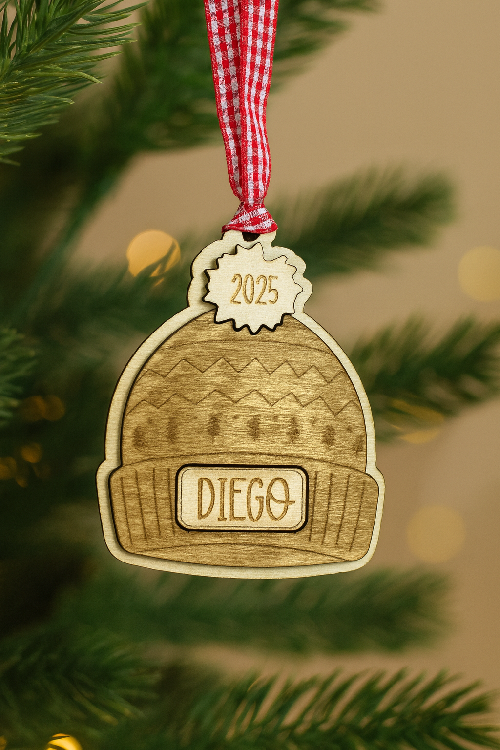 ¡Dale un toque único y acogedor a tu árbol de Navidad! Este adorno personalizado en forma de gorro invernal está elaborado en madera con un diseño grabado que resalta su estilo rústico y elegante. Incluye una cinta de cuadros rojos para colgar fácilmente y un espacio especial para personalizar con el nombre que desees, convirtiéndolo en el detalle perfecto para celebrar la magia de la temporada.