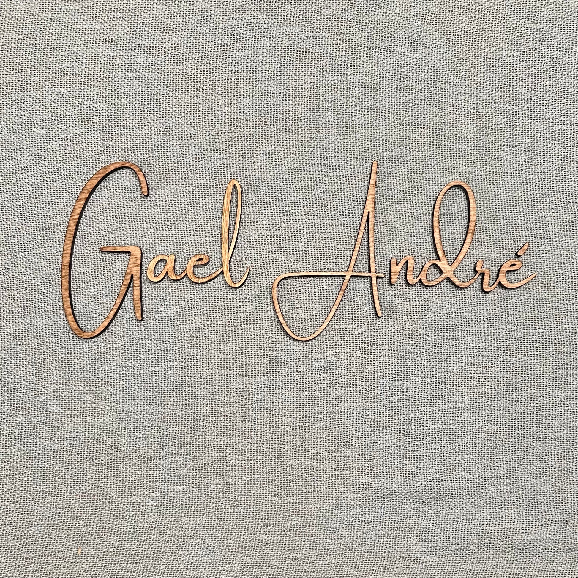 Nombre en madera de 1/8". Puedes seleccionar los colores disponibles tanto para el nombre. Puedes ver como se vería el estilo de letra, escribe el nombre en encasillado para ver la vista previa.