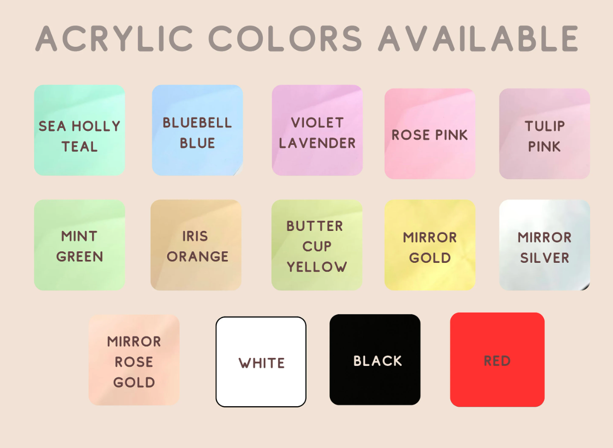 Nombre en acrilico de 1/8" sobre placa redonda de madera Birch de 3/4". Puedes seleccionar los colores disponibles. La placa redonda tiene grabado disenos de animales de la selva.